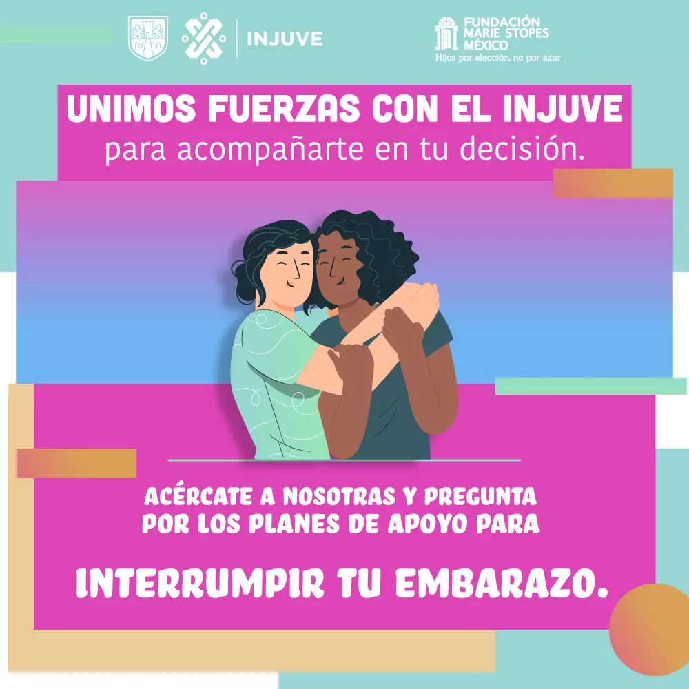 Si tienes menos de 29, menos de 12 semanas de gestación y vives en la CDMX, Fundación MSI Marie Stopes te apoya con un subsidio de hasta el 100% si no cuentas con los recursos suficientes. ¿Qué necesitas? Debes mandar un WhatsApp al INJUVE 55 5006 8223 para poder registrar tu cita. Recuerda que esta decisión debe ser por voluntad propia.