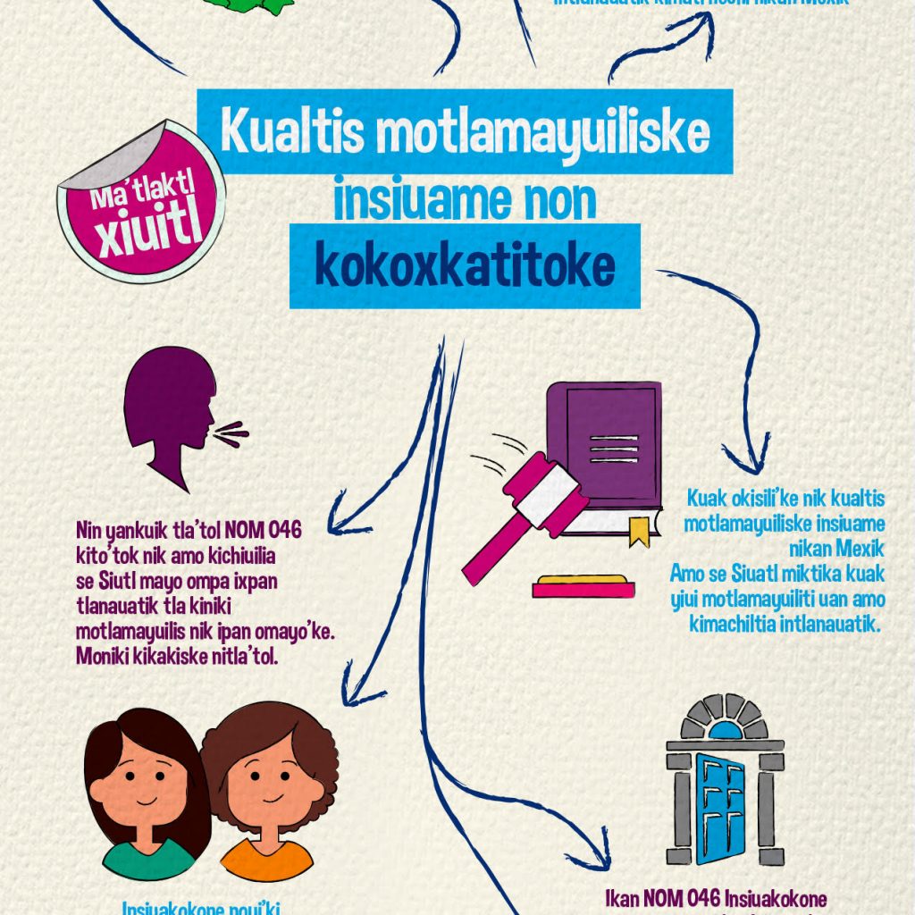 La traducción de los materiales es sobre el derecho a la interrupción legal del embarazo, uso de la pastilla de emergencia, partería y vasectomía, la cual fue realizada por Gilberta Mendoza Salazar, quien es traductora de lengua náhuatl y promotora de los derechos de las comunidades indígenas residentes. También es reconocida por haber sido la primera mujer indígena en obtener su acta de nacimiento en su lengua materna en México.